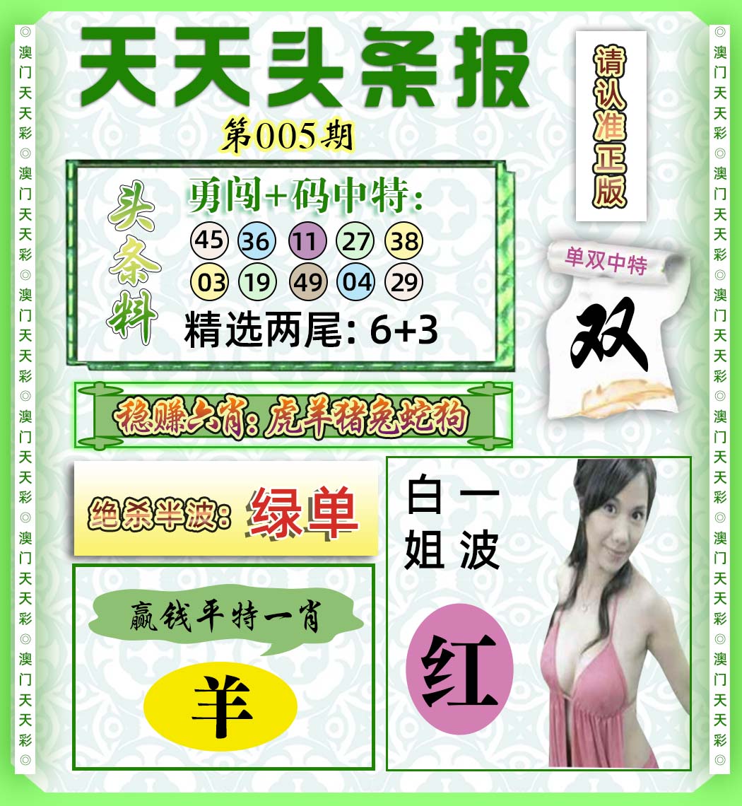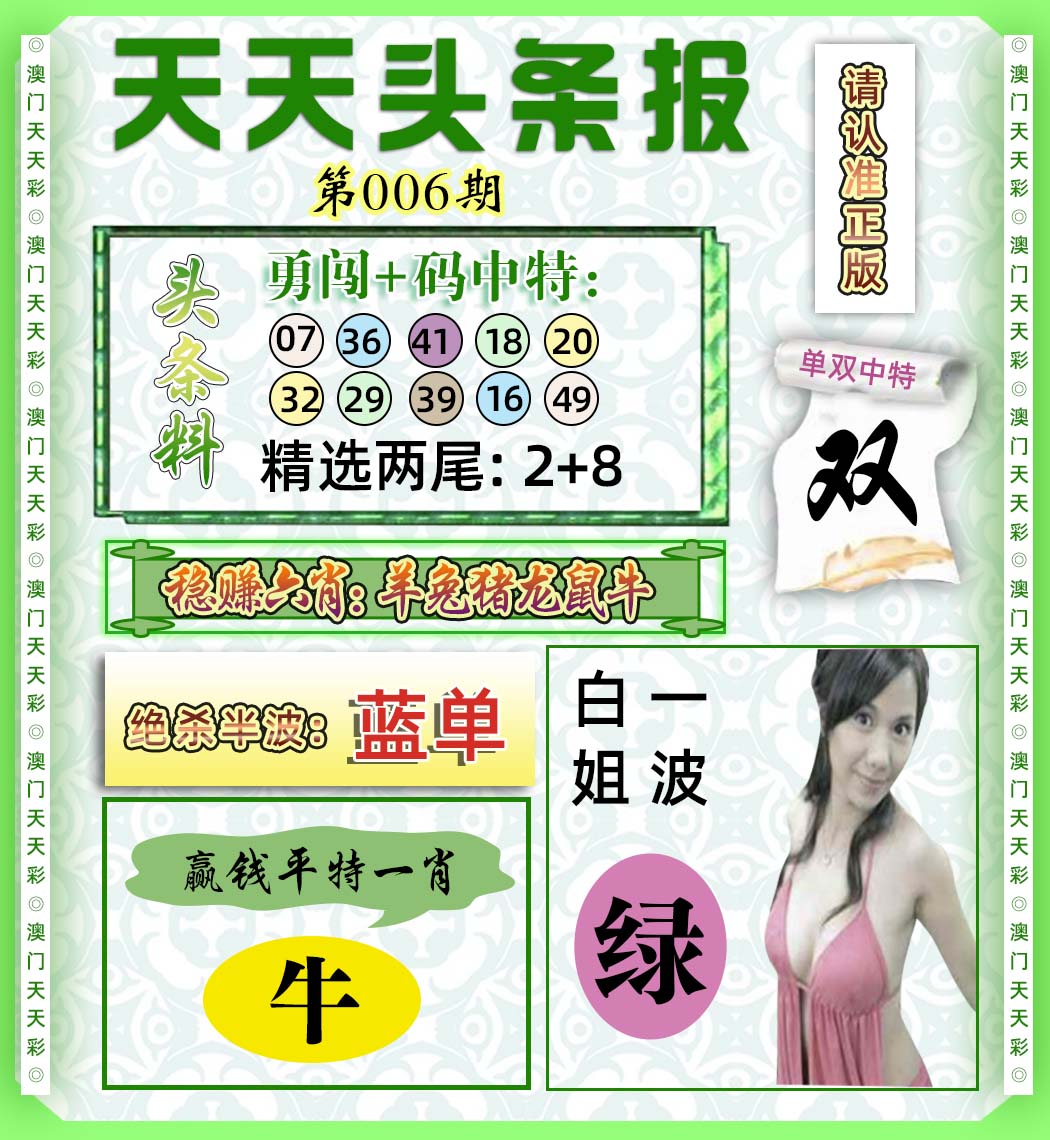 | 006期 | 猪蛇马 | 开: 牛 | ||