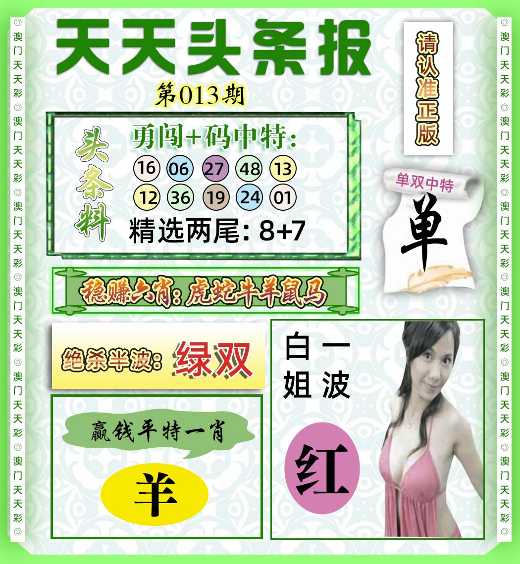 澳门天天彩 『单双两波』 |
